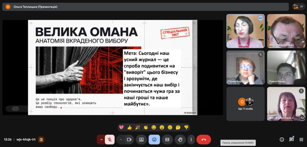 Захід пройшов у форматі відкритого діалогу, що дозволило студентам висловити власні думки, поставити запитання та критично осмислити актуальну проблему. Підсумком стало усвідомлення простої, але важливої істини: ілюзії завжди мають високу ціну, тоді як свідомий вибір відкриває шлях до справжнього розвитку та успіху.