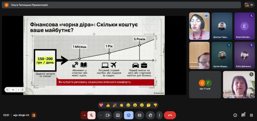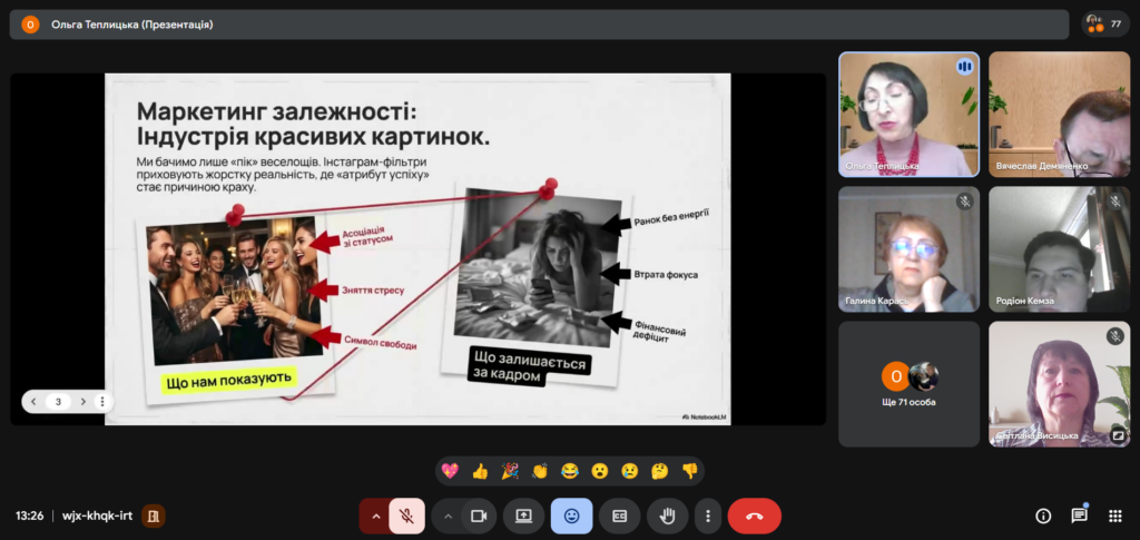 Окремий блок заходу був присвячений реальній «ціні» так званих розваг. Студенти аналізували не лише фінансові витрати, а й втрати часу, можливостей, репутації та соціальних зв’язків. Було наголошено, що залежність впливає на професійне майбутнє, особистісний розвиток і коло спілкування.