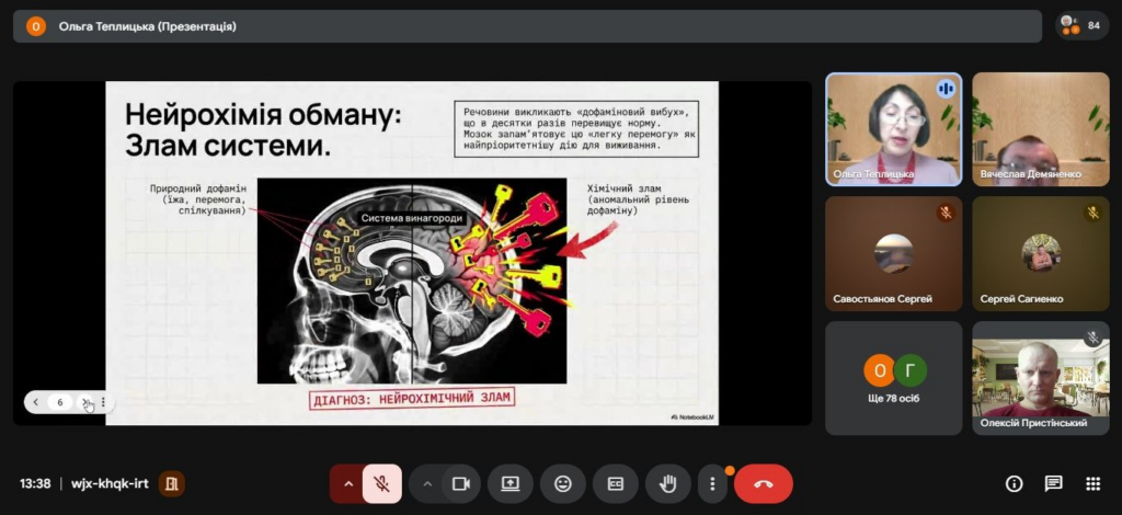 Цікавою та пізнавальною стала частина, присвячена нейрохімічним процесам у мозку. Студенти дізналися, як формується залежність, що таке «дофамінова пастка» та чому короткочасне задоволення може призводити до тривалих психологічних і фізіологічних наслідків.