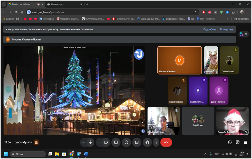 25 грудня у коледжі відбувся відкритий виховний захід «Різдвяні канікули мальовничими куточками України» метою якого було поглибити знання здобувачів освіти про природні та культурні особливості України, показати красу її мальовничих куточків узимку, розвивати інтерес до подорожей рідною країною та сформувати почуття гордості й любові до Батьківщини. І, звісно, створити новорічний настрій для здобувачів освіти, викладачів та працівників коледжу.