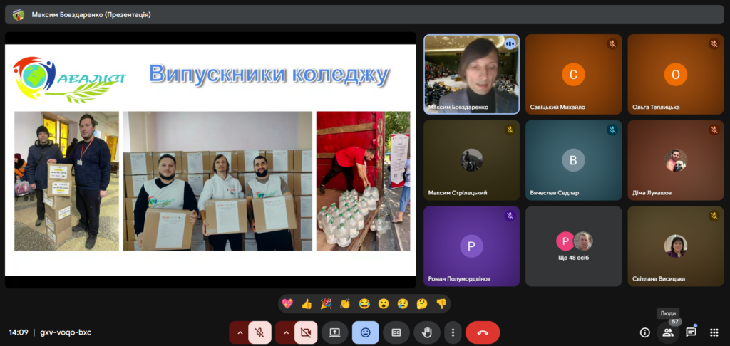 Своїми волонтерськими історіями поділилися також студенти групи 2М1125 Гаврюшенко А.М. та Савицький М.М. Під час обговорення Максим Русланович згадав і про спільну роботу з випускниками нашого коледжу Вороновим Владиславом та Дмитренком Вадимом, які також входили до волонтерської команди ГО «Аваліст».