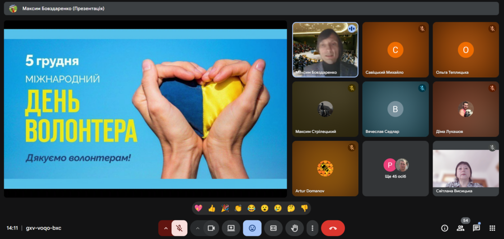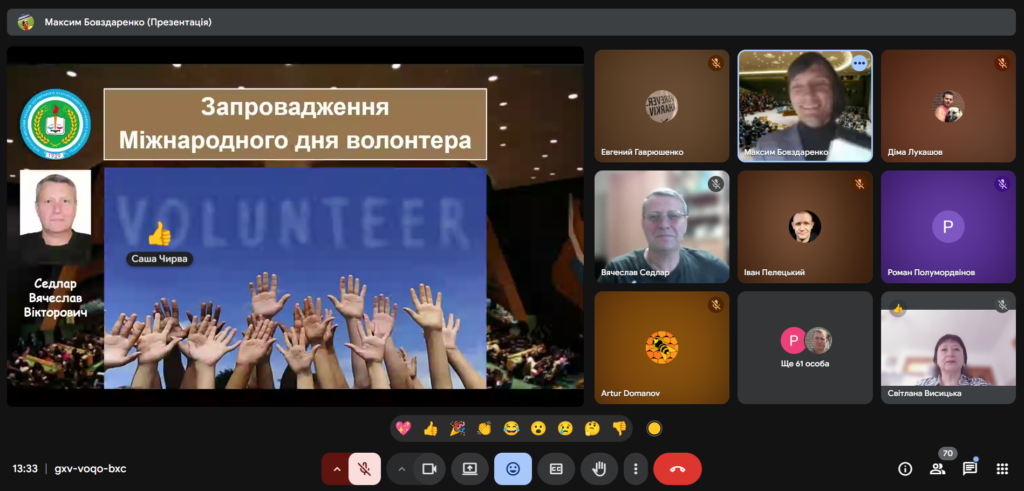 В умовах сьогодення, коли волонтерство в Україні стало невід’ємною частиною громадянської стійкості, особливо важливо формувати у молоді розуміння цінності допомоги іншим. 5 грудня з нагоди Міжнародного дня волонтера викладач фізичного виховання Бовздаренко Максим Русланович провів круглий стіл «Мій шлях у волонтерство», у якому взяли участь близько 70 осіб. Метою заходу було сприяння розвитку громадянської активності студентів, формування гуманістичних цінностей та мотивації до участі у волонтерських ініціативах.