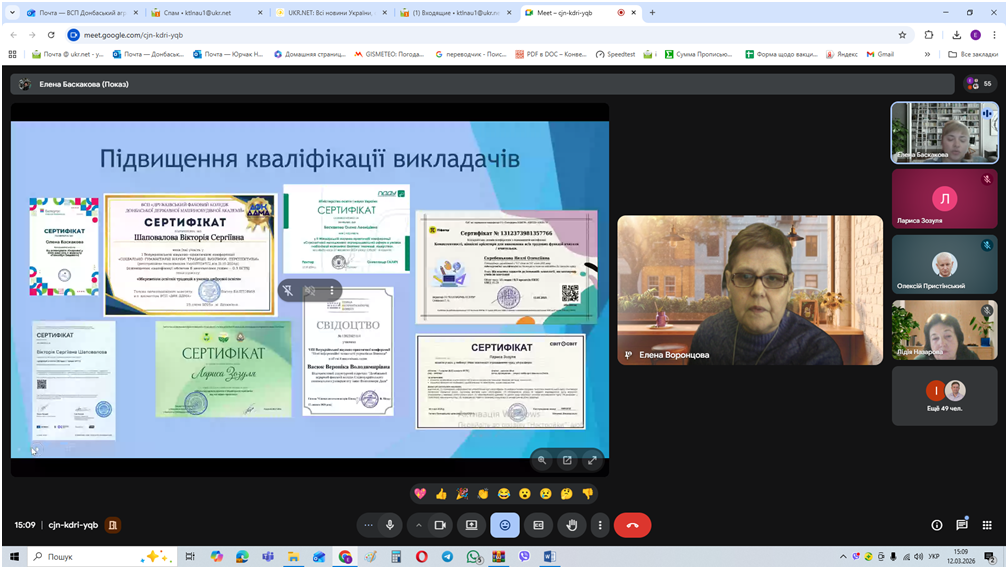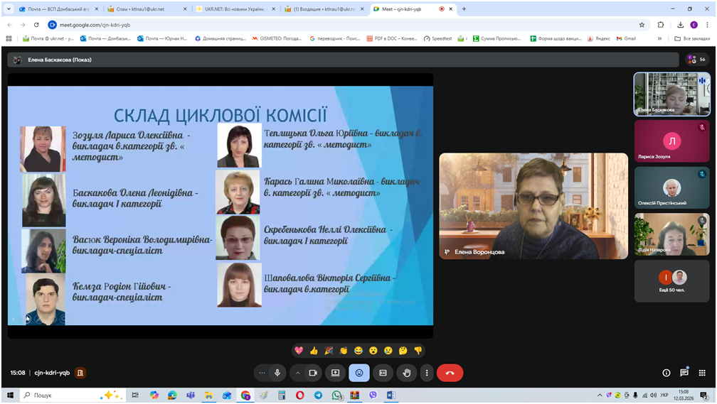 Голова циклової комісії професійної економічної підготовки Баскакова Олена відзвітувала про роботу циклової комісії, поділилася досвідом педагогів щодо використання інноваційних технологій з практичного навчання, інструментів цифрових технологій, штучного інтелекту в навчальному процесі.