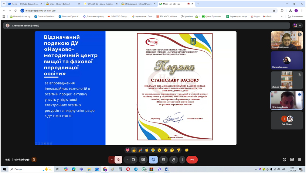 Викладач Станіслав Васюк презентував свій досвід по створенню друкованого та електронного підручника, онлайн-курсів, робочих зошитів з практичного навчання. Поділився методичною системою викладача, що базується на інтеграції інструментів штучного інтелекту та дистанційних технологій у навчальному процесі.